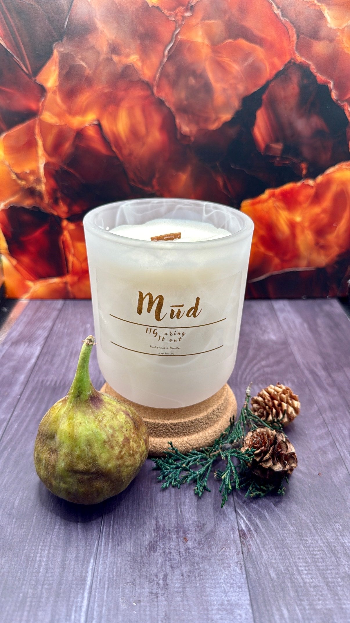 Let Fig-uring it out be the olfactory cue that turns the volume down on overwhelm and turns the dial up on calm focus. At first light, this candle greets you with a green-fruit vibrancy and leafy freshness that feels like a slow exhale — the kind that clears space in your mind for new ideas to take shape. The heart unfolds with ripe fig and soft florals, creating a soothing sensory pause that nudges stress aside and invites clarity in its place. Beneath it all, grounding base notes add warmth and balance, encouraging you to settle deeper into the present moment.